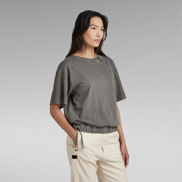 Short sleeve T-Shirt Adjustable is designed in a roomy, loose fit. By pulling the drawcord inside the waistband, a more voluminous look can be created. The neckline is cut rounded and finished with a ribbed edge.