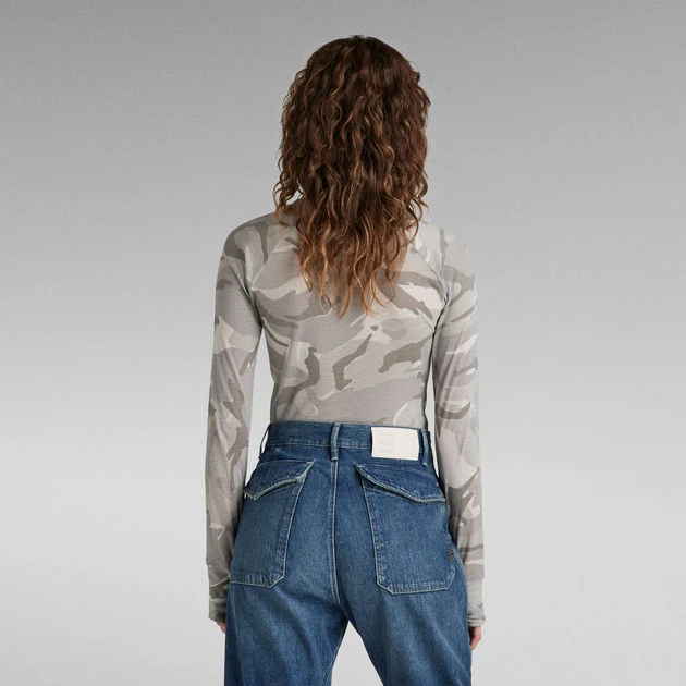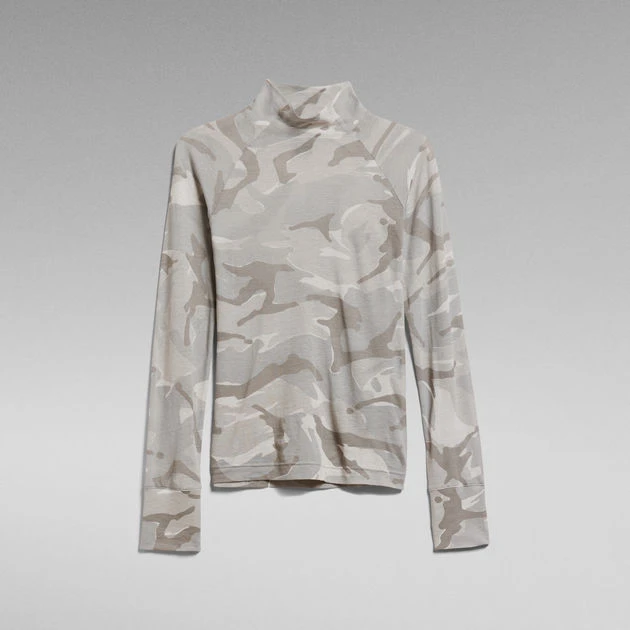 Top Turtle Neck is designed in a slim fit. A turtleneck is created by extending the front panel. The sleeves offer an elongated cuff with a thumbhole. The allover printed graphic makes it complete.