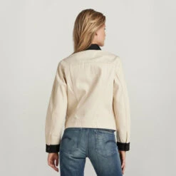 The Arc PM 3D jacket is designed with contrast colored collar and cuffs. Offering deep chest pockets with a flap closure. This denim jacket shows a shank button closure.