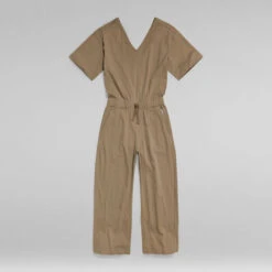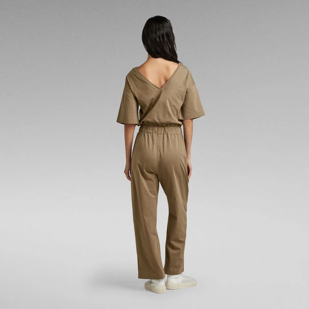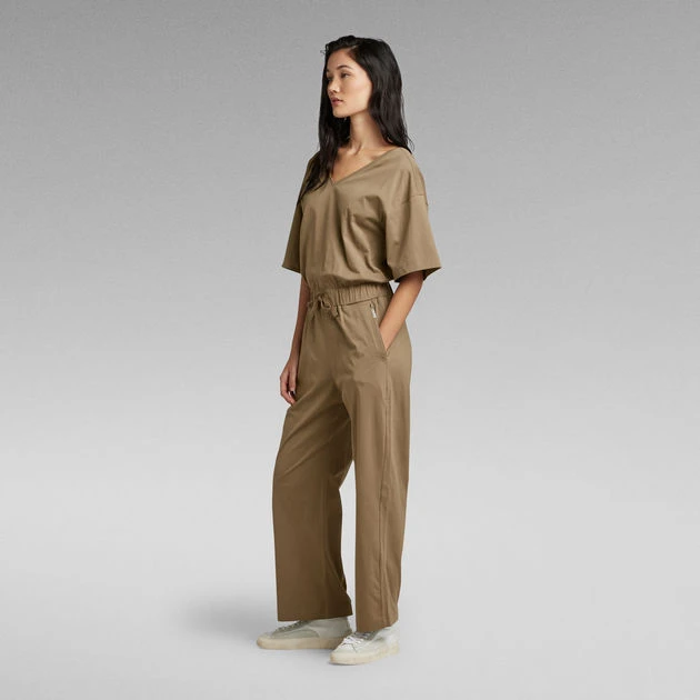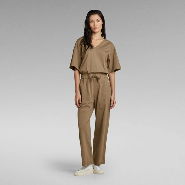 This jumpsuit is designed with slightly dropped shoulders and a wide V-neck at the front as well as the back. Suit Bohdana offers an elasticated waist with an additional drawcord. Pockets are added to the side seams.