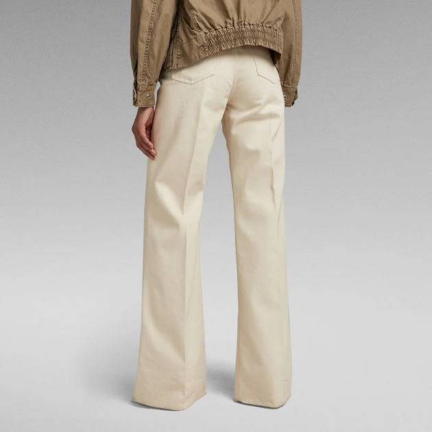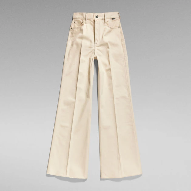 These Deck pants offer an ultra-high waist on a wide-legged silhouette. The G-Star RAW Deck pants are designed to fit smoothly around the waist and hips and open up to a wide leg. The hem is easy to trim. As it’s kept unfolded, you can shorten it to your perfect length if needed. Combine them with high heels to make it complete.