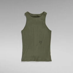 An engineered rib structure created this slim fitted tank top. Showing a binding along the neckline and armholes. The bottom is kept straight. The G-Star RAW print at the lower front signs it off.