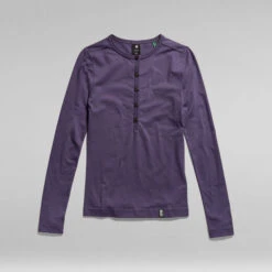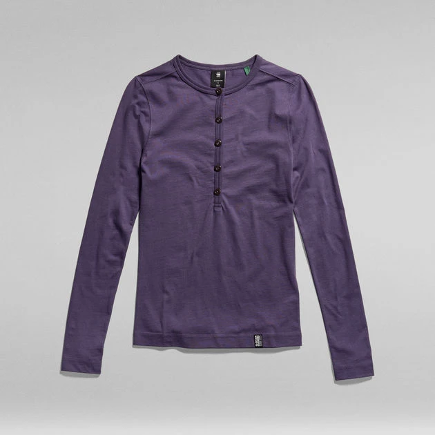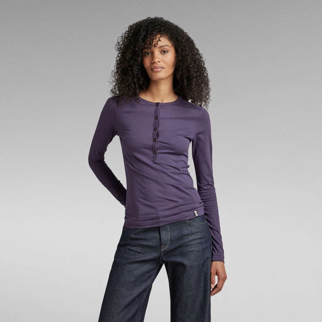 Slim top Henley Essential offers a round neck and a slim placket with buttons. The long sleeves are slightly extended and cut narrow as well.