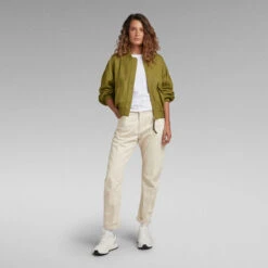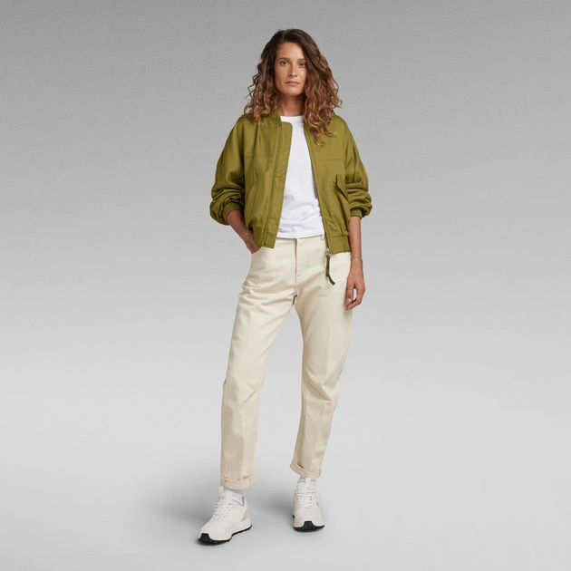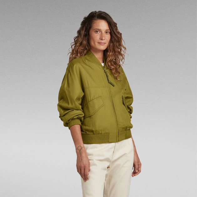 Bomber overshirt Everyday is fully lined and offers a roomy, loose fit. The cuffs and waist are finished with a ribbed edge. Flap pockets with a hidden snap are added to the waist. This bomber overshirt shows a ribbed neckline and a zipper closure. A hanger loop is added for ease.