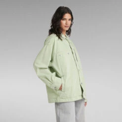 This overshirt jacket features a throat latch at the collar, allowing for a raised collar execution. Offering a woven tape inside the waist, which can be tightened to your own preference. Also at the inner back a woven tape is applied for reinforcement, while the outside shows box pleats for additional volume. At the chest and waist flap pockets with a hidden snap closure are added. This Field overshirt shows a zip closure, covered by a storm flap with hidden snaps.