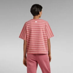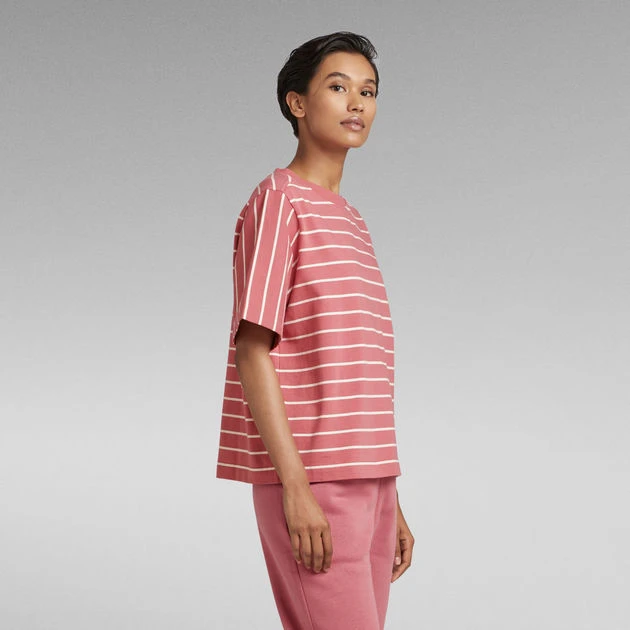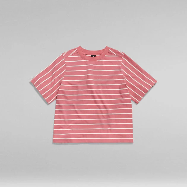 Boxy Top Heavyweight Stripe is designed in a straight fit with a boxy silhouette and a ribbed round neckline. A horizontal striped pattern is placed allover. The short sleeves are kept slightly longer. This striped top shows forwarded shoulder seams that enhance a comfortable fit.