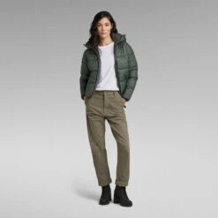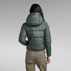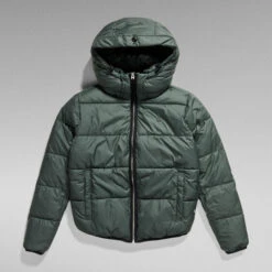 Jacket Meefic Sundu Overshirt is cut from a water repellent fabric, quilted in a horizontal stitch down. The detachable peak hood is constructed with a high raised front and pull cords for optimum protection. The binding along the sleeves and waist complements this style.