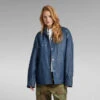 - Wide woven tape set alongside the front shoulder and pocket entrance