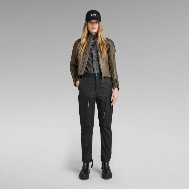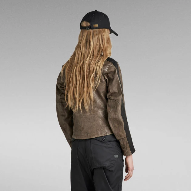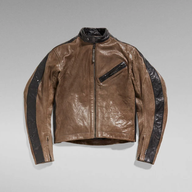Leather jacket Moto is designed in a slim fit and offers a band collar with a padded edge. This fully lined biker jacket shows an angled zip pocket at the chest. Along the sides and upper sleeves, a contrast fabric is applied. Stitched through shoulders add detail, while additional zippers at the wrist allow for an easy entrance.