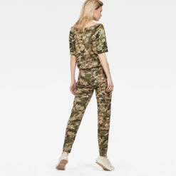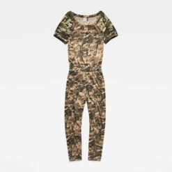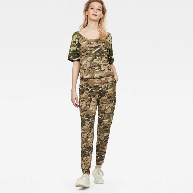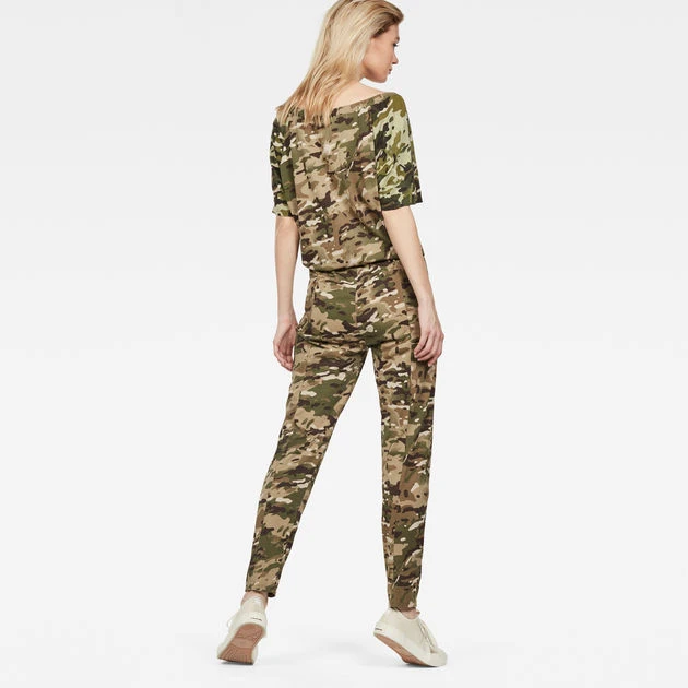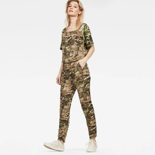 Combining an easy tapered fit with the playful silhouette of a boatneck tee, this Namic Boatneck Suit jumpsuit is versatile enough for day and night. Cut for a flattering silhouette in a two shaded camo printed jersey that feels great to wear. An interesting mix of classy feminine and playfull fun makes this jumpsuit a pleasure to wear.