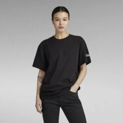 Boyfriend shirt Officer is cut in a loose fit with a curved hem and has a sewn on button closure. The cargo pockets at the chest offer a ‘stitch through’ embroidery line with a loop on top. Also at the upper back loops are added. The side slits complete it.