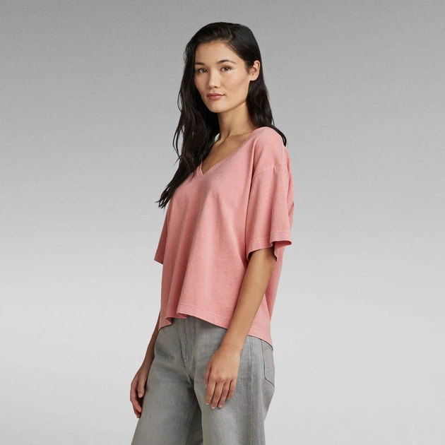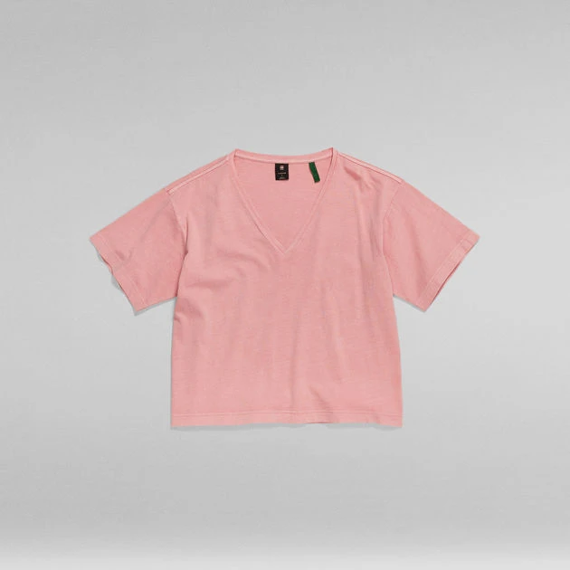 Top Overdyed offers a deep V-neck, finished with a slim binding. Due to the loose fit, a wider shoulder is created. Therefore, the sleeves sit slightly lower.