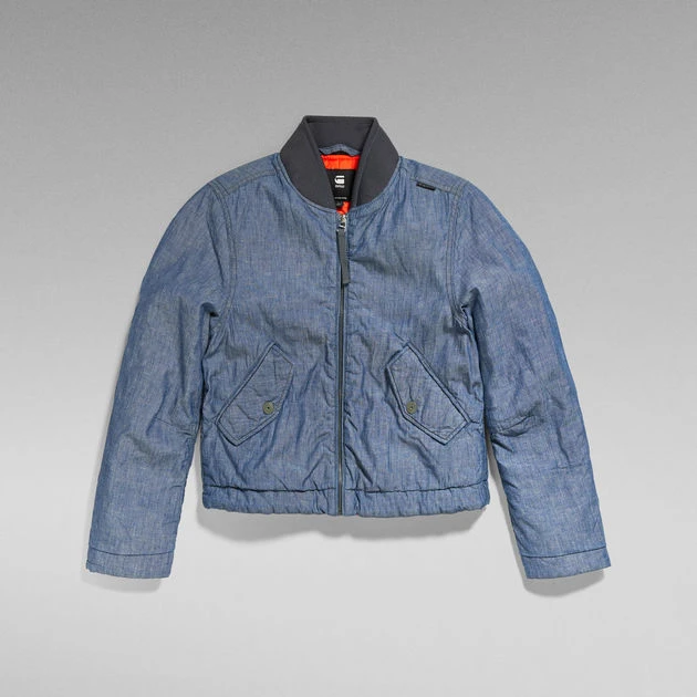 Padded bomber jacket Drawstring is fully lined and offers a soft padding. The ribbed neckline offers a contrast in material and collar. At the bottom edge an elasticated pull cord is hidden inside. This way, more volume can be created. Flap pockets are added to the waist, offering a snap button closure. This bomber shows a zipper front closure. A hanger loop is added for ease.
