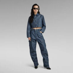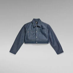 This premium denim jacket is designed in a loose fit with a cropped length. Adjust the tabs at the waistband to create a slightly tighter fit. The deep front pocket offers a pen compartment. The two snap buttons at the opposite side indicate the placement of the inner pocket. Shank buttons add character to this short denim jacket.