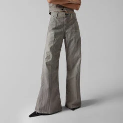 - Loose fit, widens further from the knee down