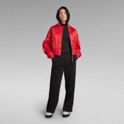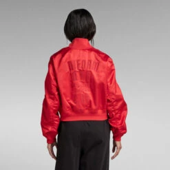 Premium bomber Embro offers a loose fit. The ribbed edges add to a comfortable design. This zip through jacket offers flap pockets with a concealed snap button closure at the waist. Along the outer sleeve seam a gathered effect is created. Combined with the embroidered graphic at the back, a character piece is created.