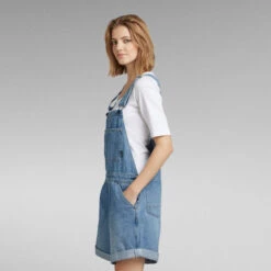 Combining a straight, loose fit with the playful silhouette of a shortened dungaree, the Faeroes short overall offers a summer solution in denim. Turned up hems add to it. The split chest pocket completes this premium short overall.