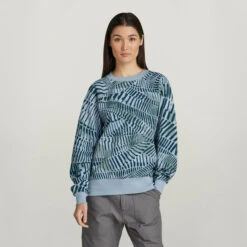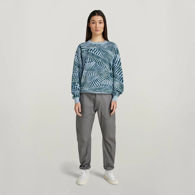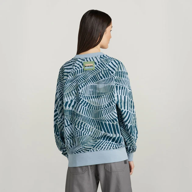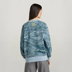 Sweater Allover Loose is designed in a roomy fit and offers raglan sleeves with a ribbed cuff. Also the waist is finished with a ribbed edge. The multi layered print creates a colored design.