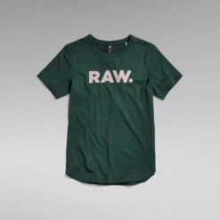 Short sleeved T-Shirt RAW offers a slim fit with a curved hem. A RAW print is added to the chest.