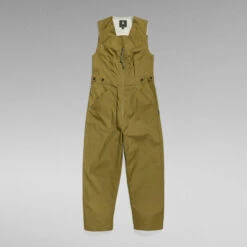 Sleeveless jumpsuit Relaxed is designed in a cropped length. A V-neck is combined with a zipper closure for an easy entrance. At the sides, straps are added for adjustability of the waist. This overall offers roomy pockets at the front. At the back, a single patch pocket is combined with a tool pocket underneath.