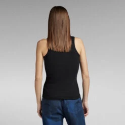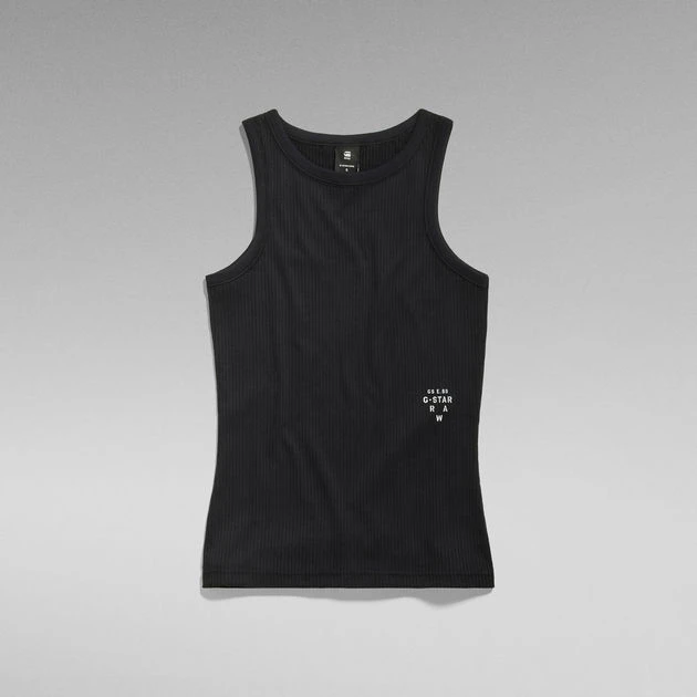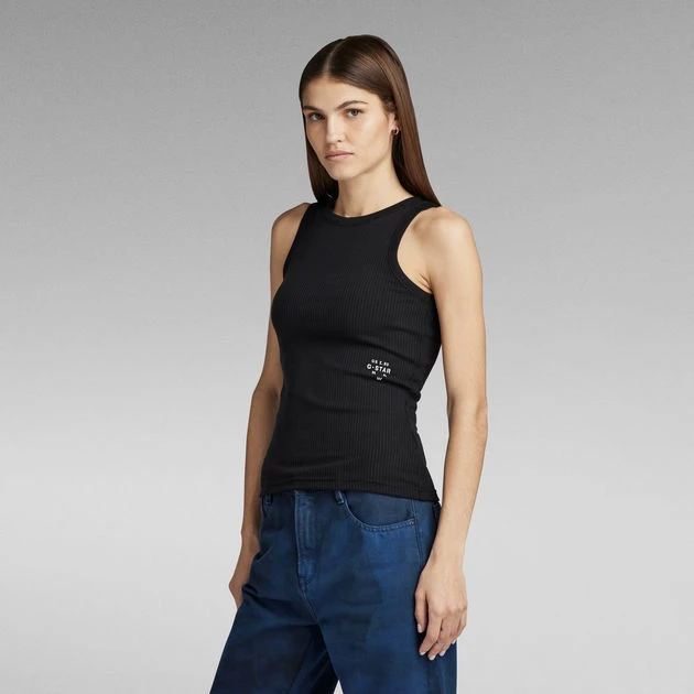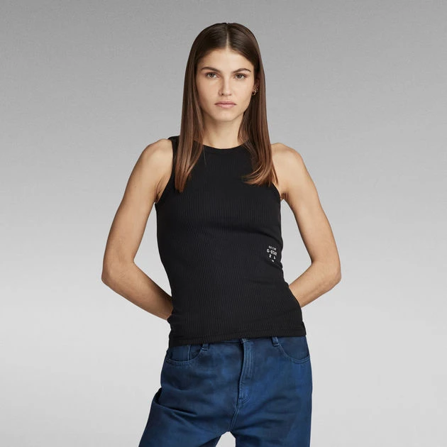 Tank top Rib is created in a slim fit. Showing a binding along the neckline and armholes. The bottom is kept straight. The woven G-Star RAW label at the lower front signs it off.