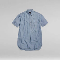 Shirt dress 2.0 is designed in a loose fit and offers a curved hem with slits at the sides. It features a shirt collar that is combined with snap buttons underneath. A single chest pockets offers a side entry. The back of this dress is extended and adds character. Side seam pockets come in handy.