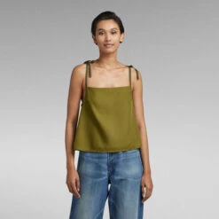 Sleeveless shirt Para Simple Tank is designed in an A-line fit with a straight front neck and a lower back. Fine herringbone tapes are added to the shoulders and allow for a personalized fit. This top is lined.