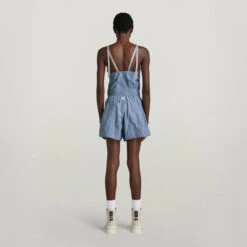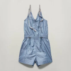 Playsuit Summer offers a straight fit, where the elasticated drawcords at the waist allow for a tighter look. The woven shoulder straps can be adjusted to a personalized height. Side seam pockets complete it.