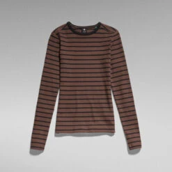 Long sleeve top Slim Rib Stripe is designed in a slim fit and offers a bound round neck. A horizontal stripe repeat is placed across the full body.