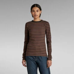 Long sleeve top Slim Rib Stripe is designed in a slim fit and offers a bound round neck. A horizontal stripe repeat is placed across the full body.