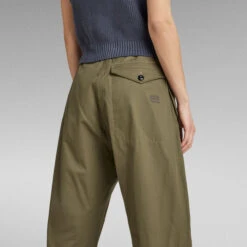 Cargo pants Summer Snow are designed in a roomy fit offering a tape at the waist to create a gathered look. Waist pockets with a reverse flap have a hidden snap button closure. These cargo pants come with additional zipper pockets as well. Volume is created around the knees, where a horizontal pleat is caught in the seam. The snaps at the ankles allow for a tighter cuff when preferred.