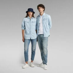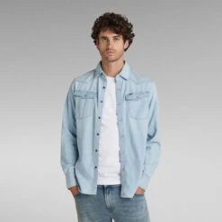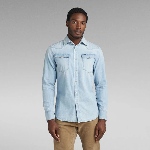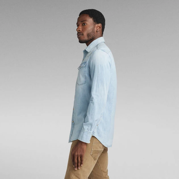The 3301 Slim Shirt is crafted from lightweight denim with a rich, uneven surface texture.