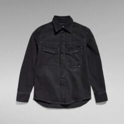 Black denim shirt Dakota Evergreen offers a straight fit with a slightly curved hem. Flap pockets with a snap button closure are added to the chest. The shaped upper back panel adds detail to this unisex denim shirt.