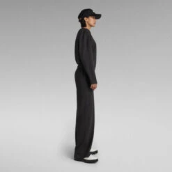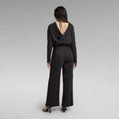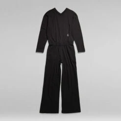 Jumpsuit Wide Leg is designed in a straight fit with a wide leg silhouette. The crossover construction at the back allows for an easy access. This jersey suit shows a subtle V-neck. Pockets are caught in the side seams. The embroidered graphic at the waist signs it off.