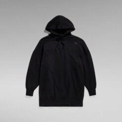 Hoodie dress XXL features a comfy oversized fit with a roomy hood. Pockets are created within the side seams. Ribbed finished edges complete this XXL hooded sweater dress.